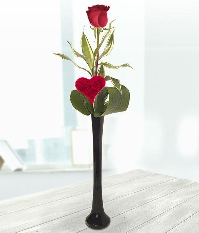 Step away from tradition with a Red Rose signifying romance and elegance. Presented in an elegant glass vase.